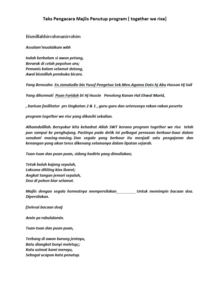 Contoh Teks Ucapan Perasmian Penutup Pdf